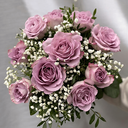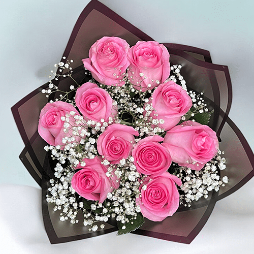 10 wunderschöne Rosen mit Schleierkraut, in einer schönen Verpackung