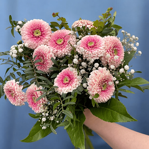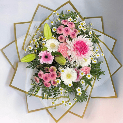 Wunderschöne Strauß aus Gerberas, Löwenmaul und Strandflieder. Hinweis: Bitte beachten Sie, dass es bei Schnittblumen zu leichten Abweichungen in Farbe oder Sorte im Vergleich zur Abbildung kommen kann, da nicht immer alle Blumen verfügbar sind. Die Anzahl der Blumen bleibt jedoch gleich oder wird sogar erhöht. Niemals erhalten Sie weniger als den angegebenen Wert.
