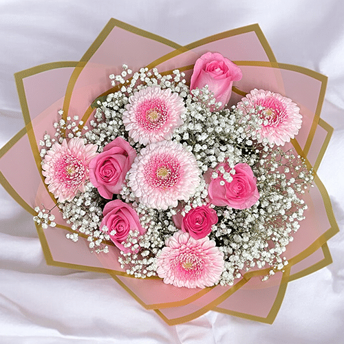 Ein wunderschöner Strauß aus Rosen, Gerberas und Nelken. Hinweis: Bitte beachten Sie, dass es bei Schnittblumen zu leichten Abweichungen in Farbe oder Sorte im Vergleich zur Abbildung kommen kann, da nicht immer alle Blumen verfügbar sind. Die Anzahl der Blumen bleibt jedoch gleich oder wird sogar erhöht. Niemals erhalten Sie weniger als den angegebenen Wert.